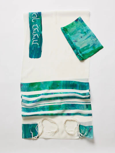 Each tallit design begins as a watercolor painting in my studio, and is then printed with permanent dyes onto silk crepe de chine, a lightweight fabric that you'll love to drape over your shoulders. They are 18" x 72" - a versatile size that suits bat or bar mitzvah students, and can also be worn by adults.